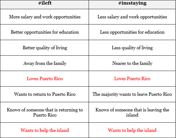 These are some of the differences and similarities that those who left and stayed in Puerto Rico have. I would love to understand why we persist on promoting the “#yomequedoaqui” (#imstayinghere) while we continue to divide the only thing that unites us….our love for our island. There are currently a lot of initiatives happening where the diaspora is not included. We, the diaspora, are not cowards because we left, in any case we are brave to have chosen to leave. It takes a lot of courage to leave everything for an unknown “future betterment”. Likewise, you can’t have the diaspora blaming the current situation in the island to those who stayed. As mentioned in the previous article “Game theory”, we need to unite the forces of those who left and strengthen our “Boricua” pride for the common good of our island. We are all suffering from the current situations, indirectly or directly. This is not the moment, to turn our backs…but to unite for a common interest for the wellbeing of our home. What does it matter if I left? Long distance relationships don’t always fail, if there is true love. The diaspora and those who stayed share the same wishes of seeing our island progress and triumph. Videos like the one posted weeks ago about the UPR Cayey chorus, show what unites us Puerto Ricans everywhere… “The Boricua Dawn”.